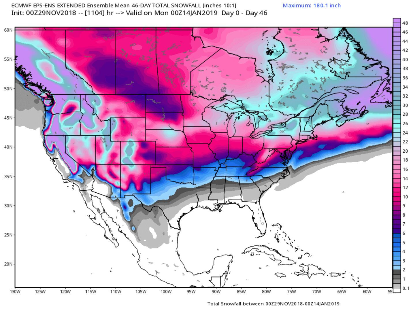 ECMWF 6-WEEK ENSEMBLE SNOWFALL OUTPUT: