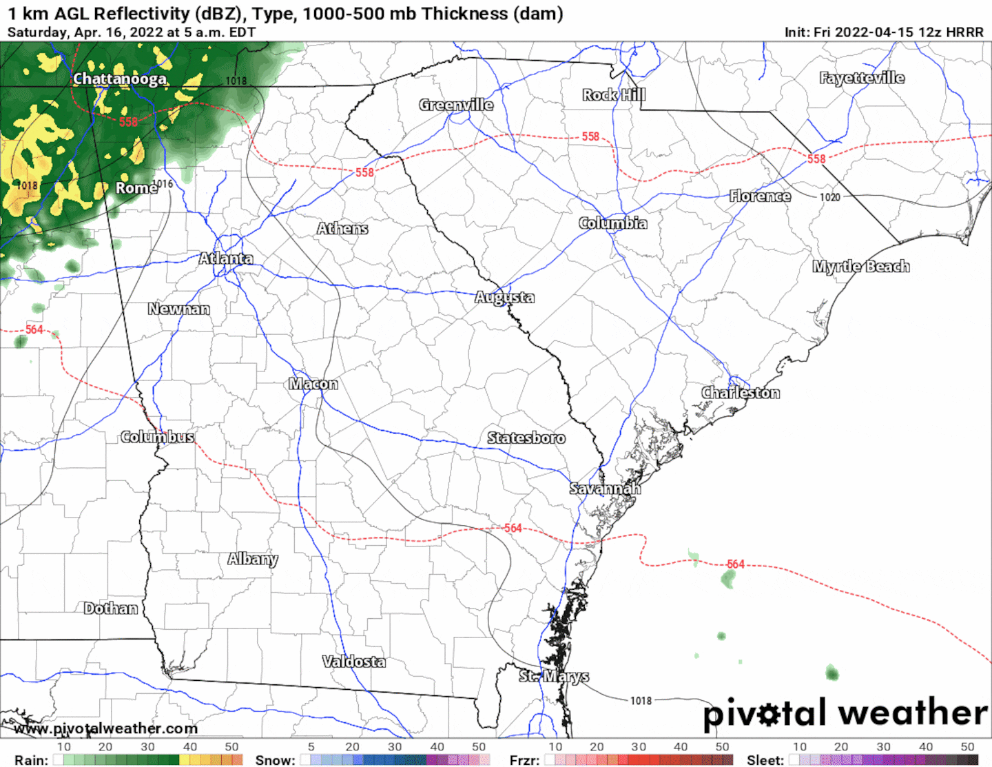 Below is a Futurecast Radar animation for Saturday morning. Rain showers and a few thunderstorms will move from the north to the south between 4am and 11am, but Metro Atlanta should dry out by 12pm Saturday.