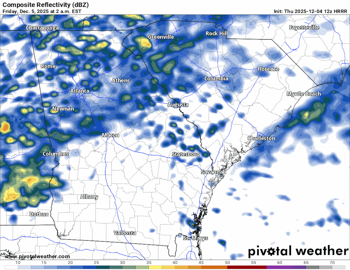 Nevertheless, Metro Atlanta can expect up to a tenth of an inch of rainfall through tonight. The animation below illustrates the Futurecast Radar through the late night hours.