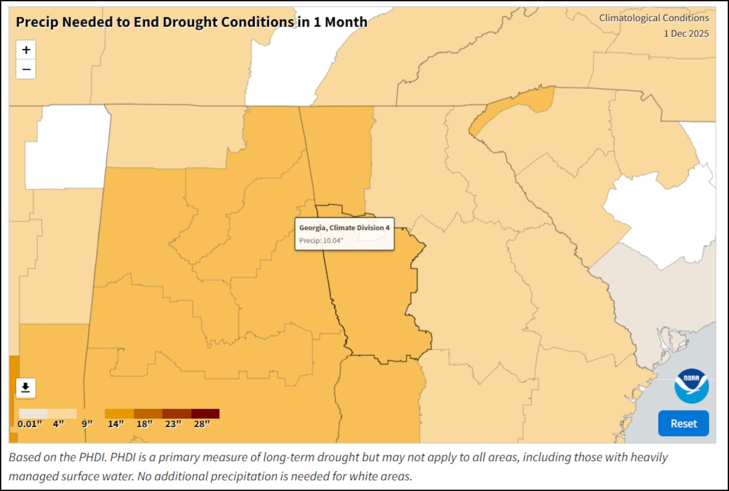 According to NOAA, as much as 6.5 to 10 inches of rain is needed in the next 4 weeks to end the drought in Metro Atlanta.