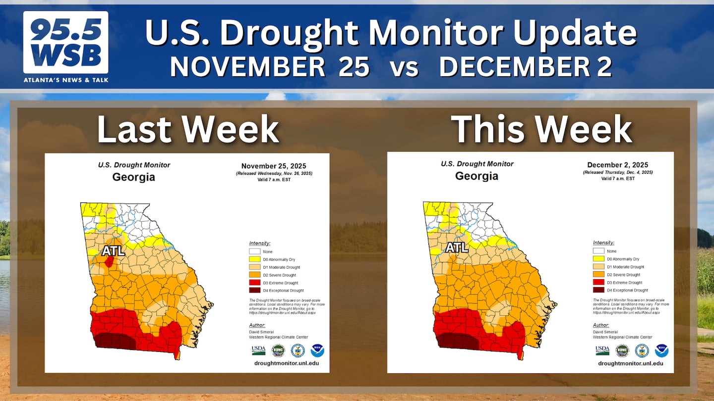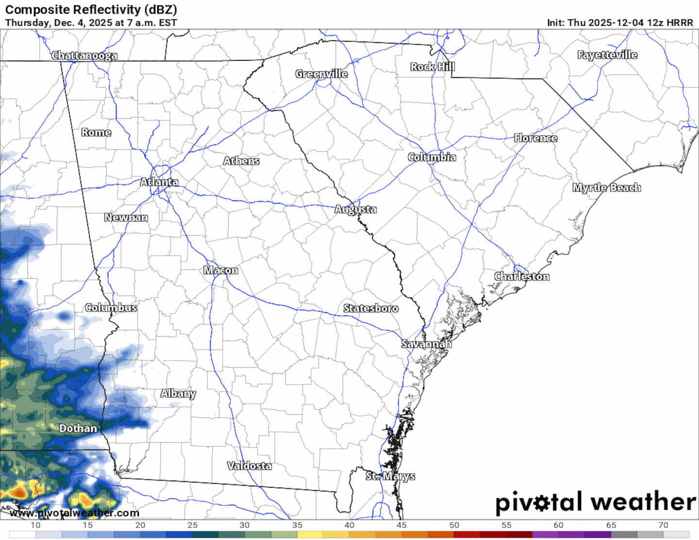Both Thursday and Friday’s rain showers will be beneficial for the state of Georgia, which is experiencing Severe to Extreme Drought throughout the Coastal Plains as well as the Piedmont regions of the state.