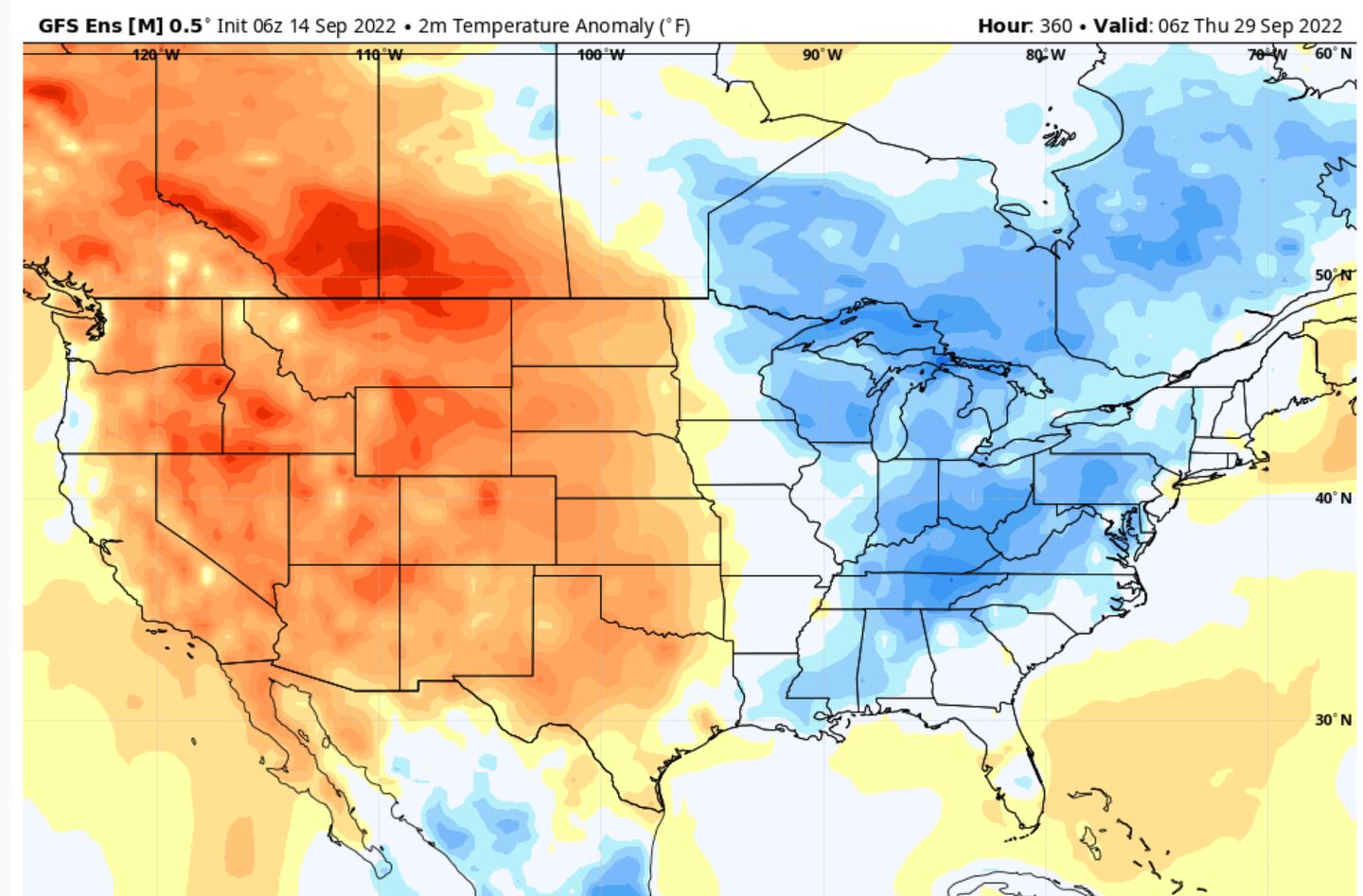 EVEN IF we do get a big warm-up, another cool-off is expected (approximately Sept 27-Oct 10) with another East Coast trough forecast to follow any warmer ridge by the end of this month and start of October: