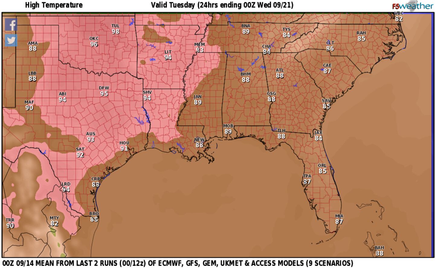 LET ME REITERATE, the uncertainty produced by not one but three typhoons in the West Pacific makes for a lower than normal confidence in the return of heat to our region. IF one or more of the typhoons are stronger than expected or recurve more to the North than expected then our region will probably NOT get that warm because that would shift the jet stream ridge more to our West.