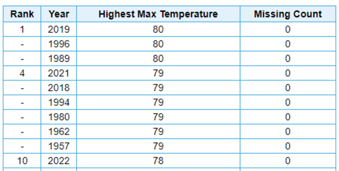 But February’s icy heart has thawed in recent years. Looking at the climatological data, thermometers climbed to 80 degrees in 2019, 79 degrees in 2018 and 2021, and 78 degrees in 2022.