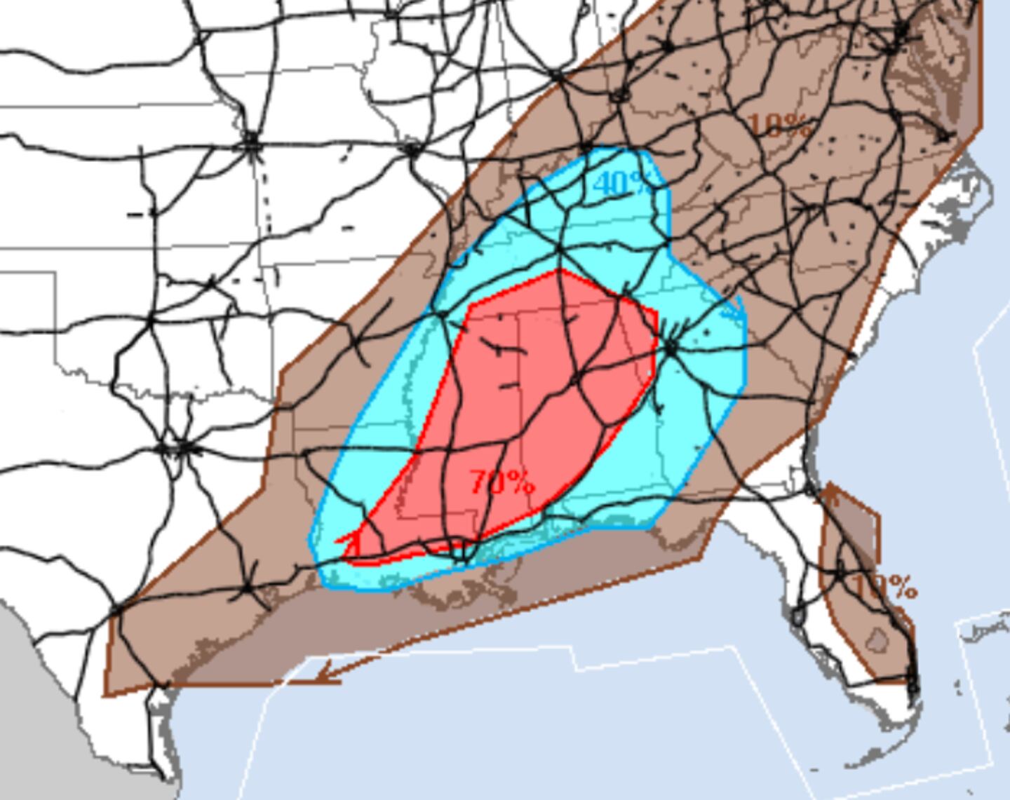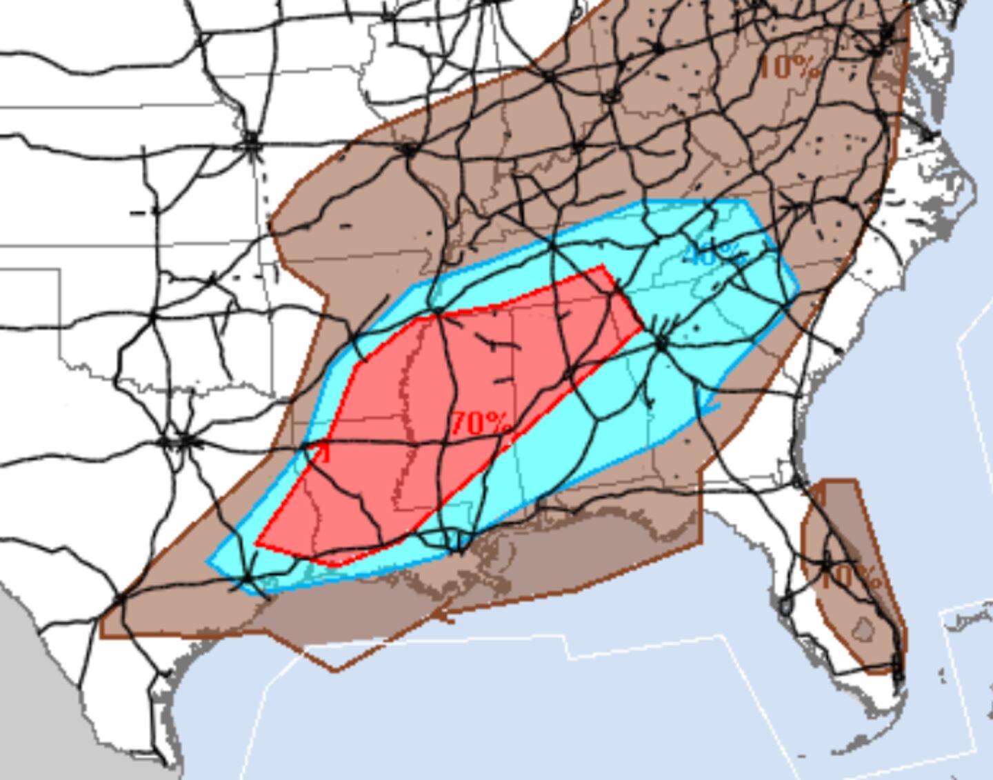 At least as I write this it looks like the worst will be in MS/AL, but that could change so stay tuned for updates on 95.5 WSB throughout the day and evening and read on for more.