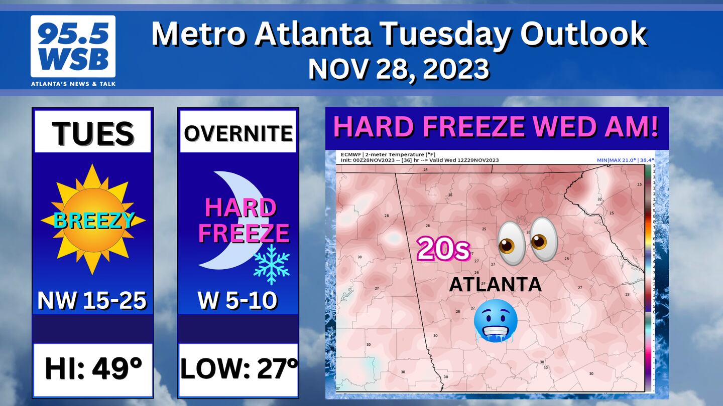 Outside of the perimeter, many suburban temperatures will drop into the mid to upper 20s on Wednesday morning!