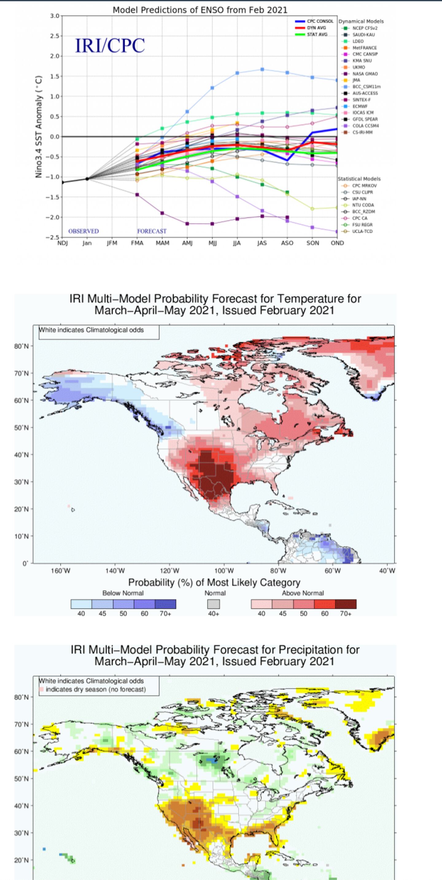 Current projections indicate the La Nina will continue but weaken slowly some in the months ahead: