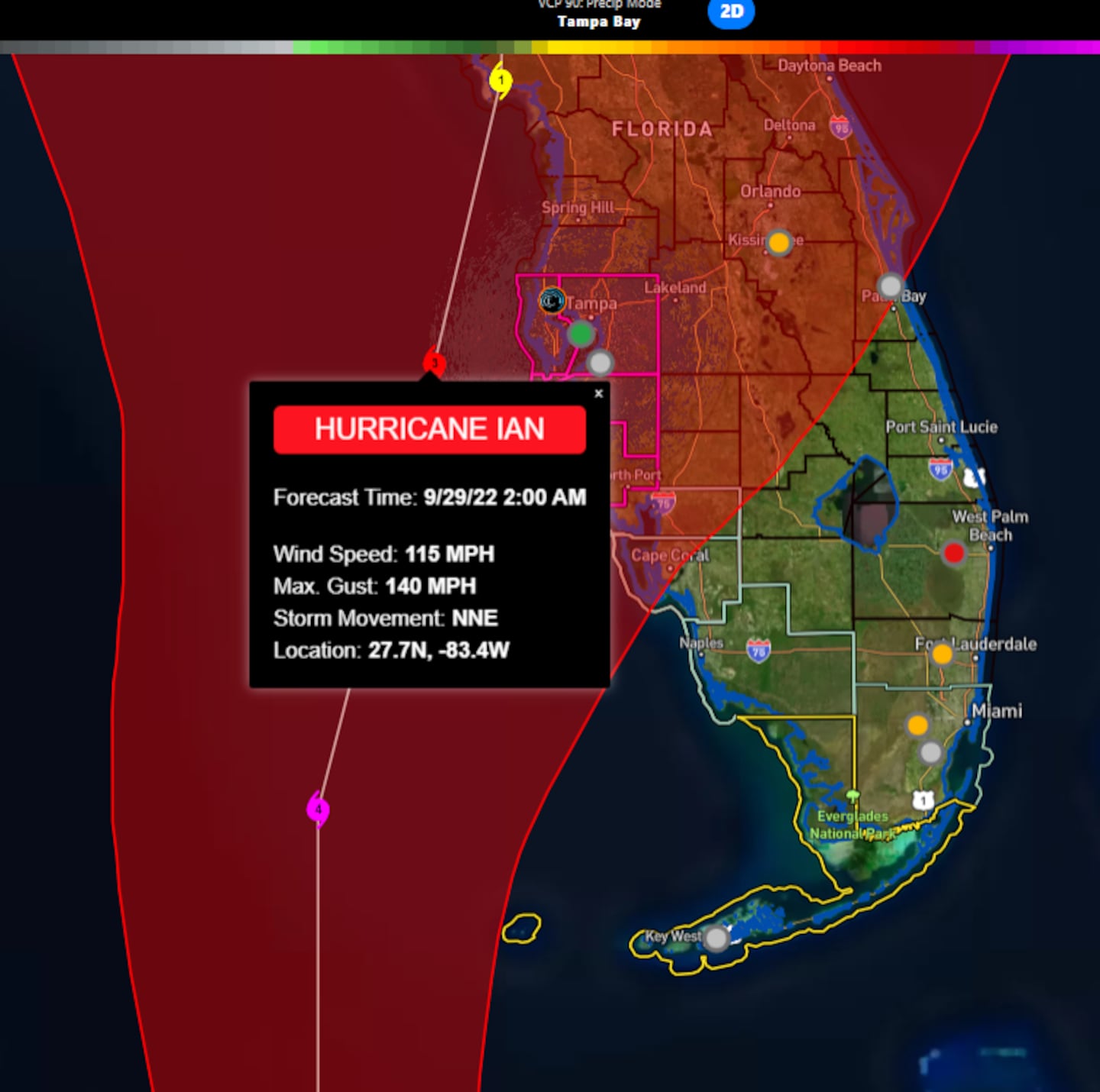 Hurricane Ian is forecast to strengthen into a Major Category 4 hurricane between Cuba and Florida’s Gulf Coast. Sustained wind speeds as high as 115 mph are possible just west of Tampa Bay before the center of Ian moves north over Homosassa Springs and Cedar Kay.