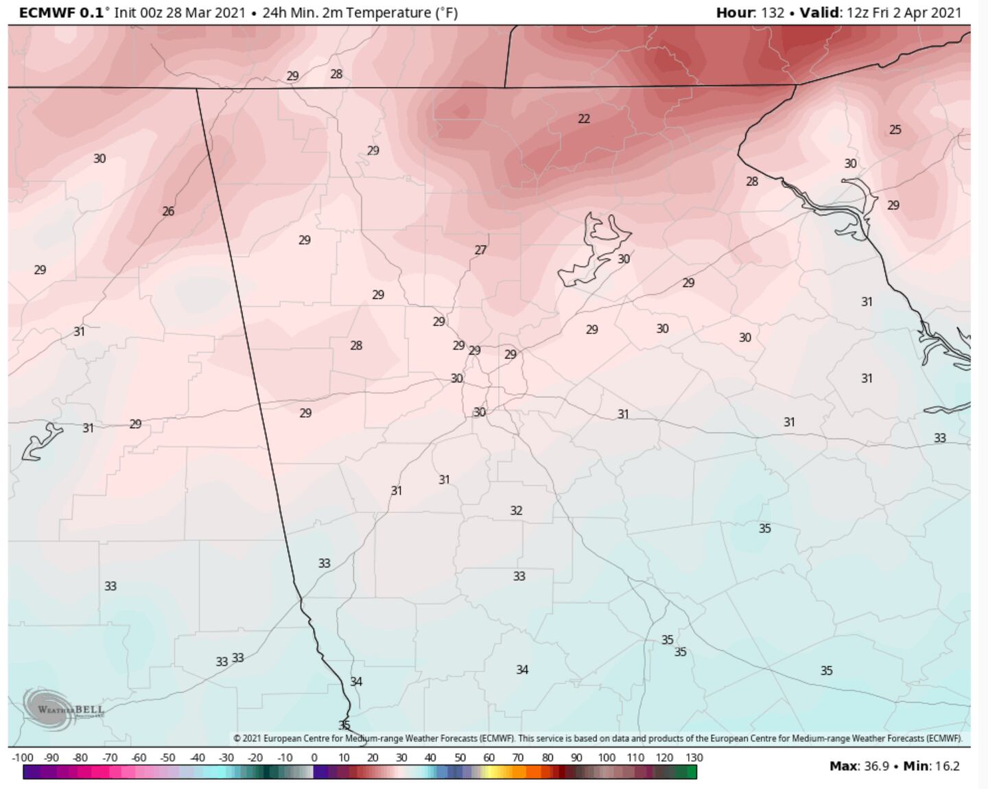 It was March 25th when the global model variants started suggesting a last season cold snap as typically happens in late March and sometimes in April. I think some people call it Blackberry winter or some such nickname.
