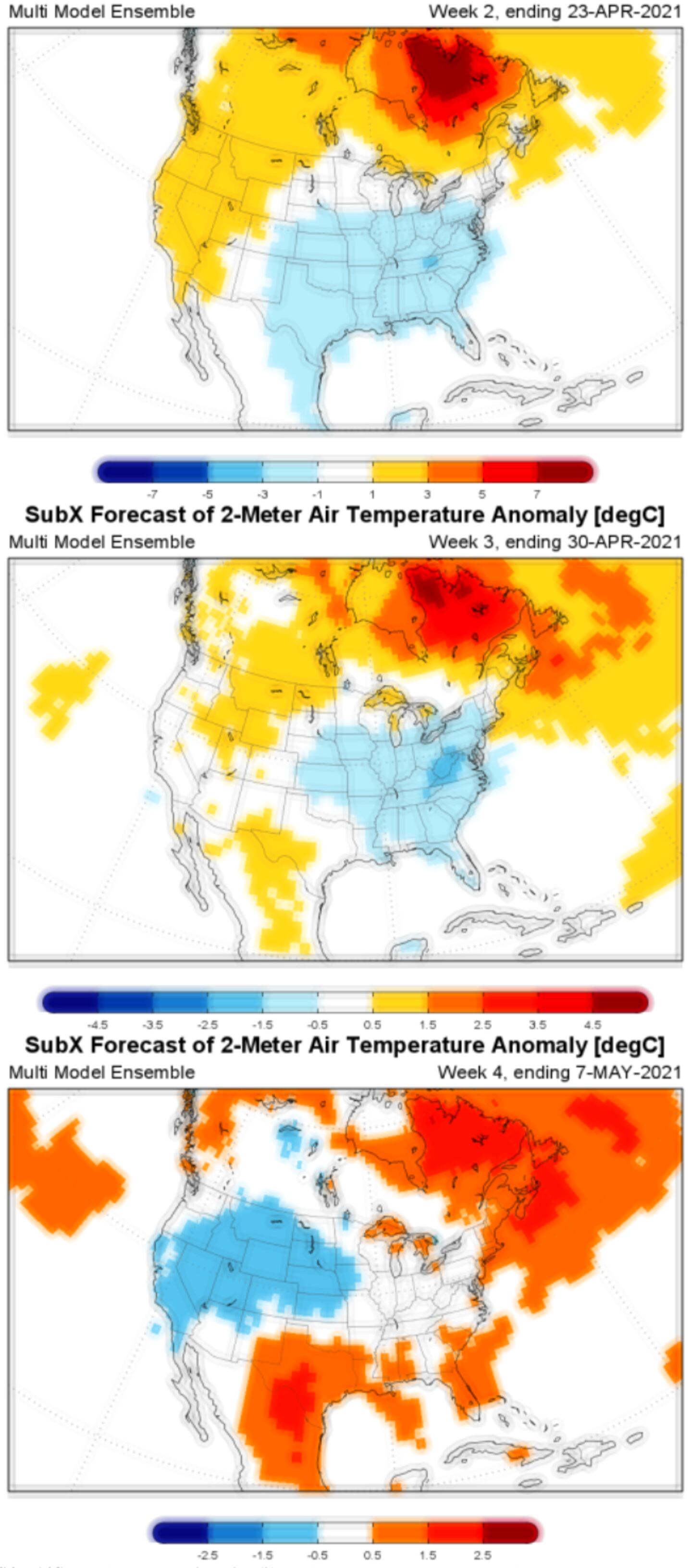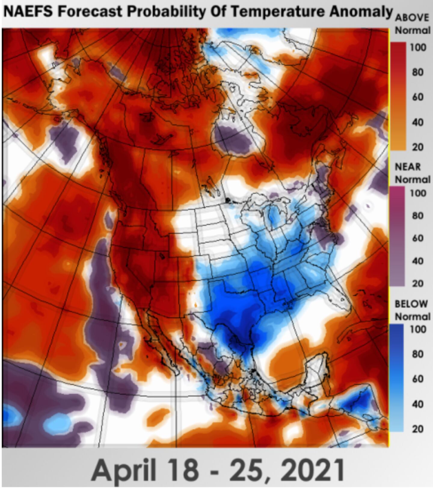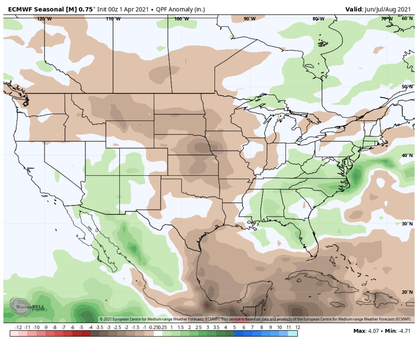 Much like my first “preliminary Spring and Summer outlook” issued at the start of March, it still looks like the greatest consensus for a long hot dry summer is in the center of the country with some extension in the West and Northern regions.