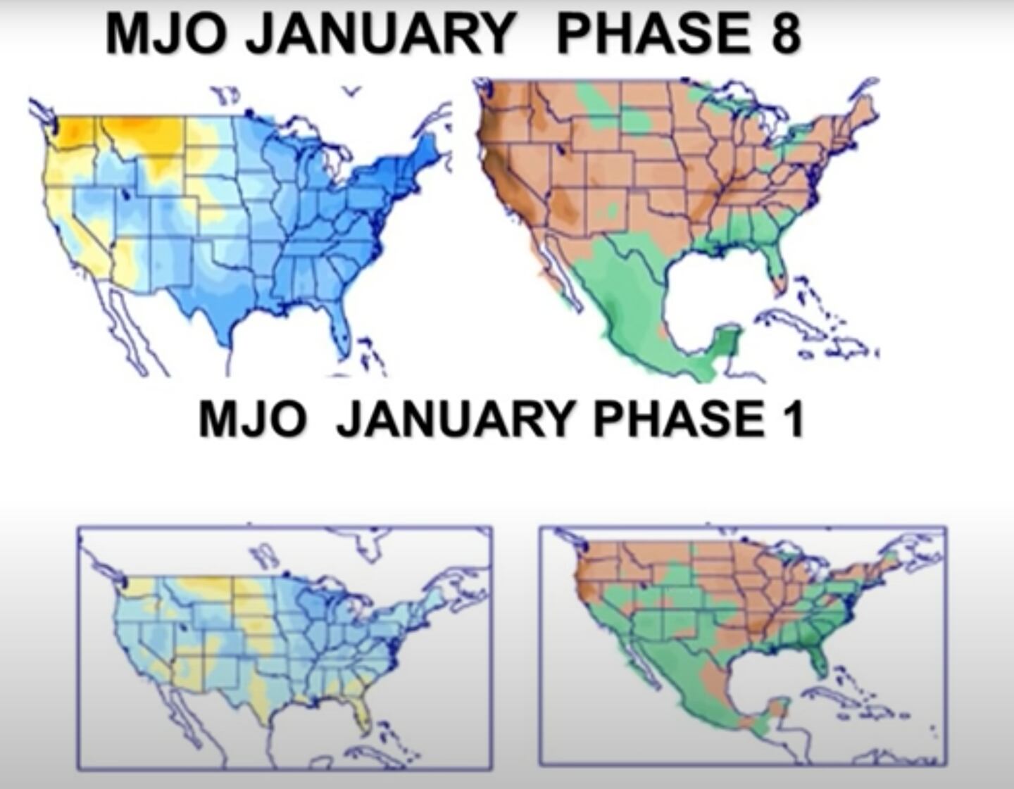 Keep in mind the phase of the MJO is NOT the only driver of weather, many other factors play a role and can mitigate the MJO.