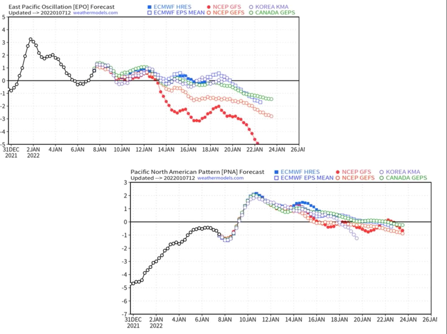 So we need the numerical equations to be right about the change in the MJO AND THE TELECONNECTION INDICES first, then we need to see what type of trough we get.