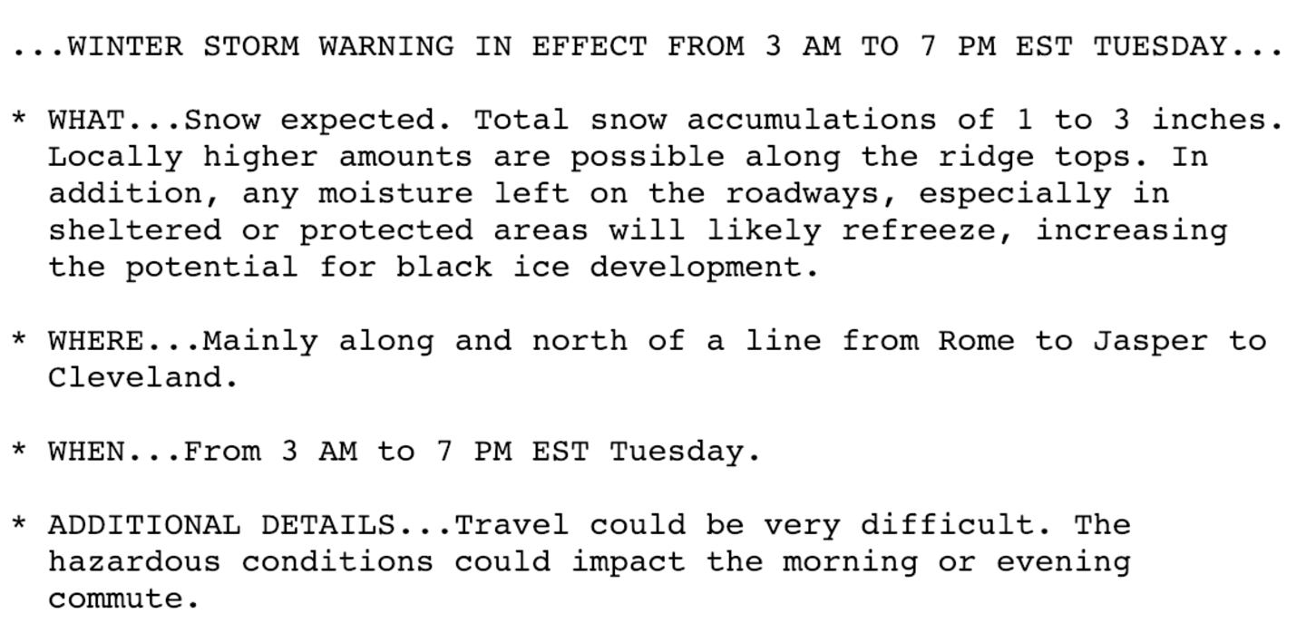 The pink area has been upgraded to a WINTER STORM WARNING. The blueish areas have been upgraded to a WINTER WEATHER ADVISORY.