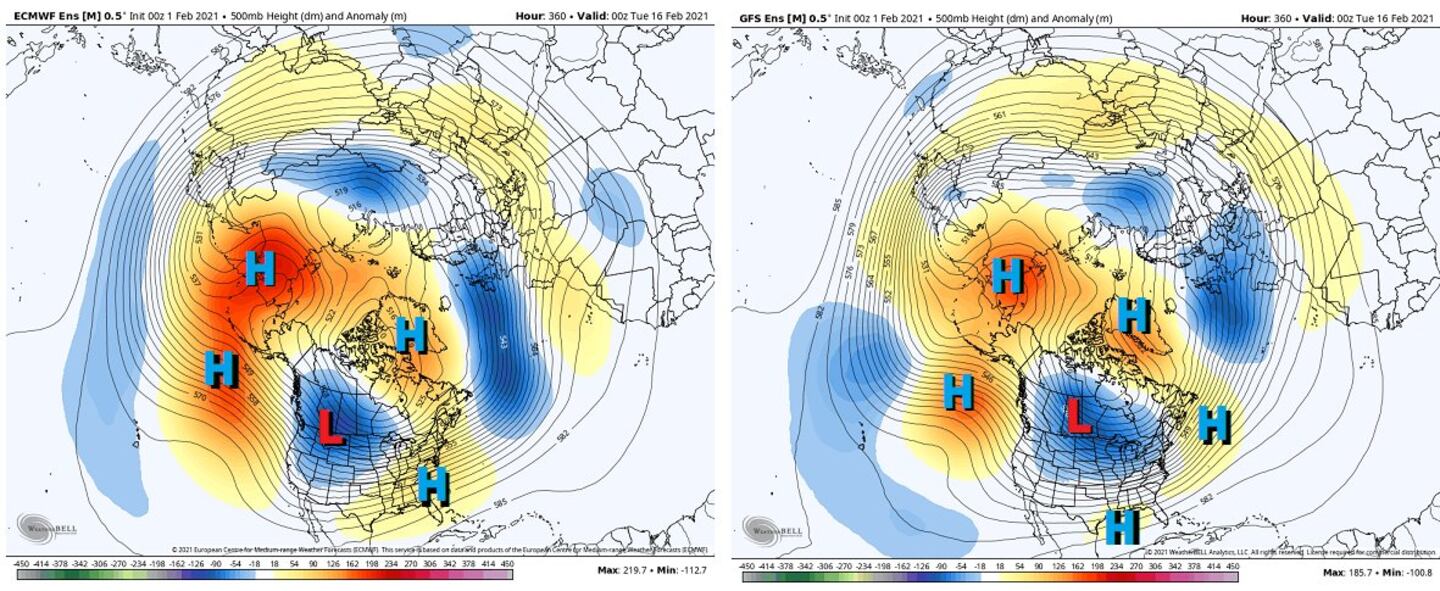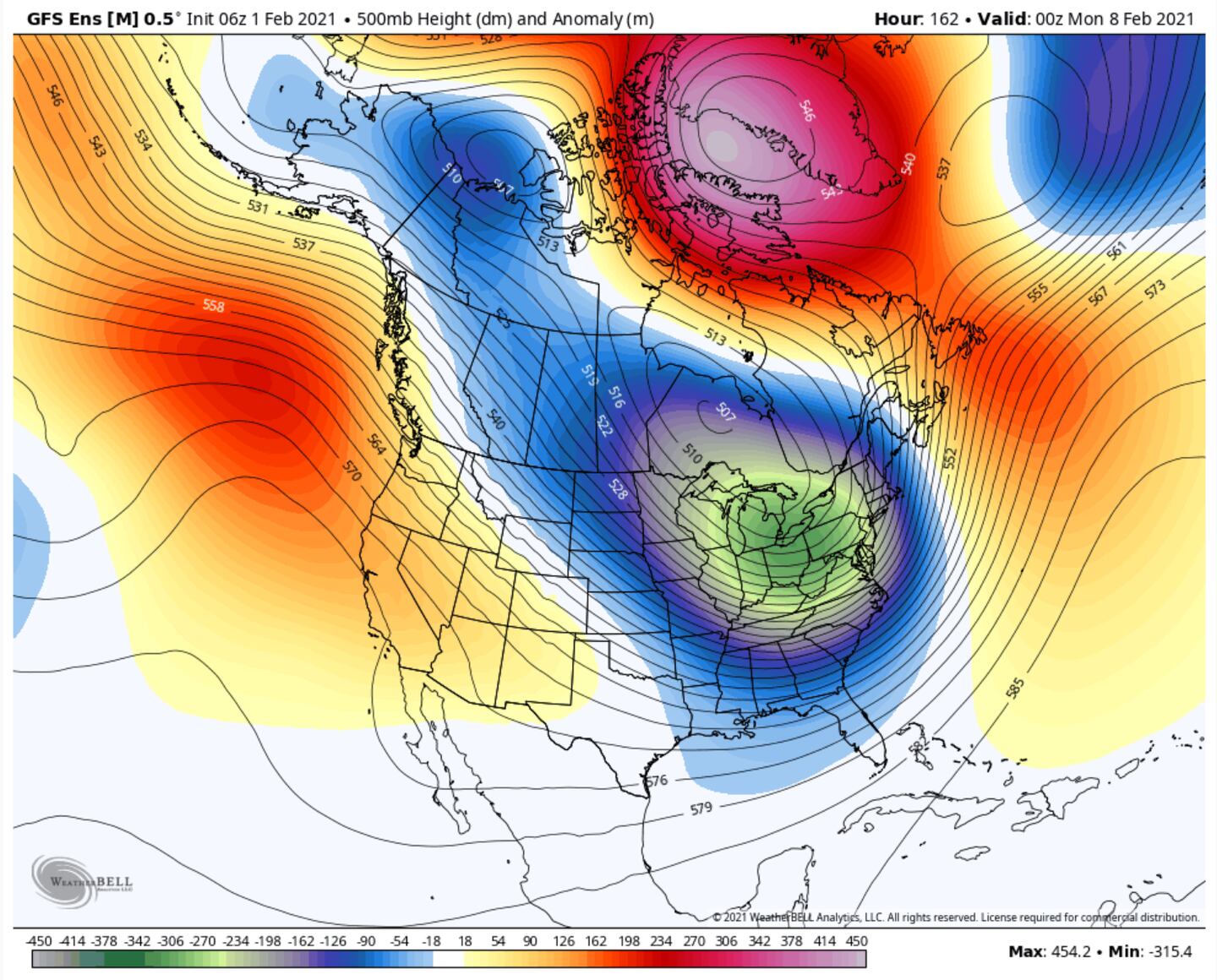 But then the primary global models GFS/ECMWF show a big change with a polar plunge of the jet stream with a ridge out West and an upper level trough over the East: