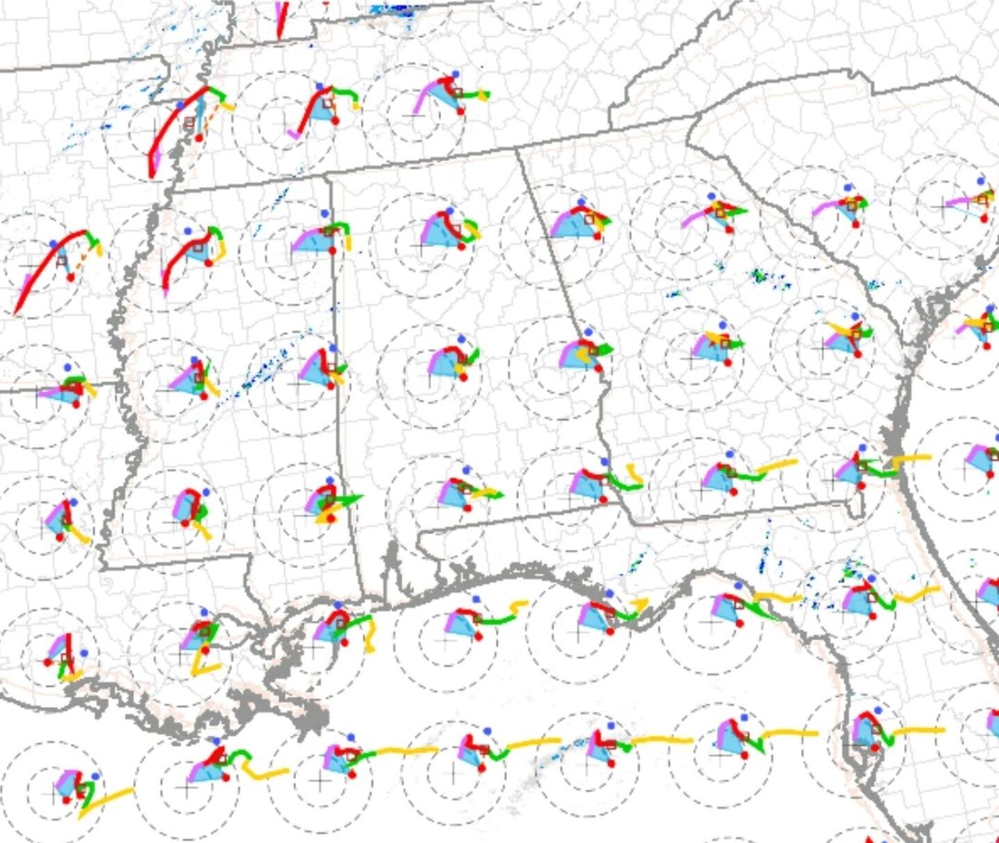 I also like to look at forecast HODOGRAPHS from the weather balloon soundings and forecast hodographs. Simply put when the line is long and strait line damaging winds are a threat, when the line curves a tornado threat is greater.