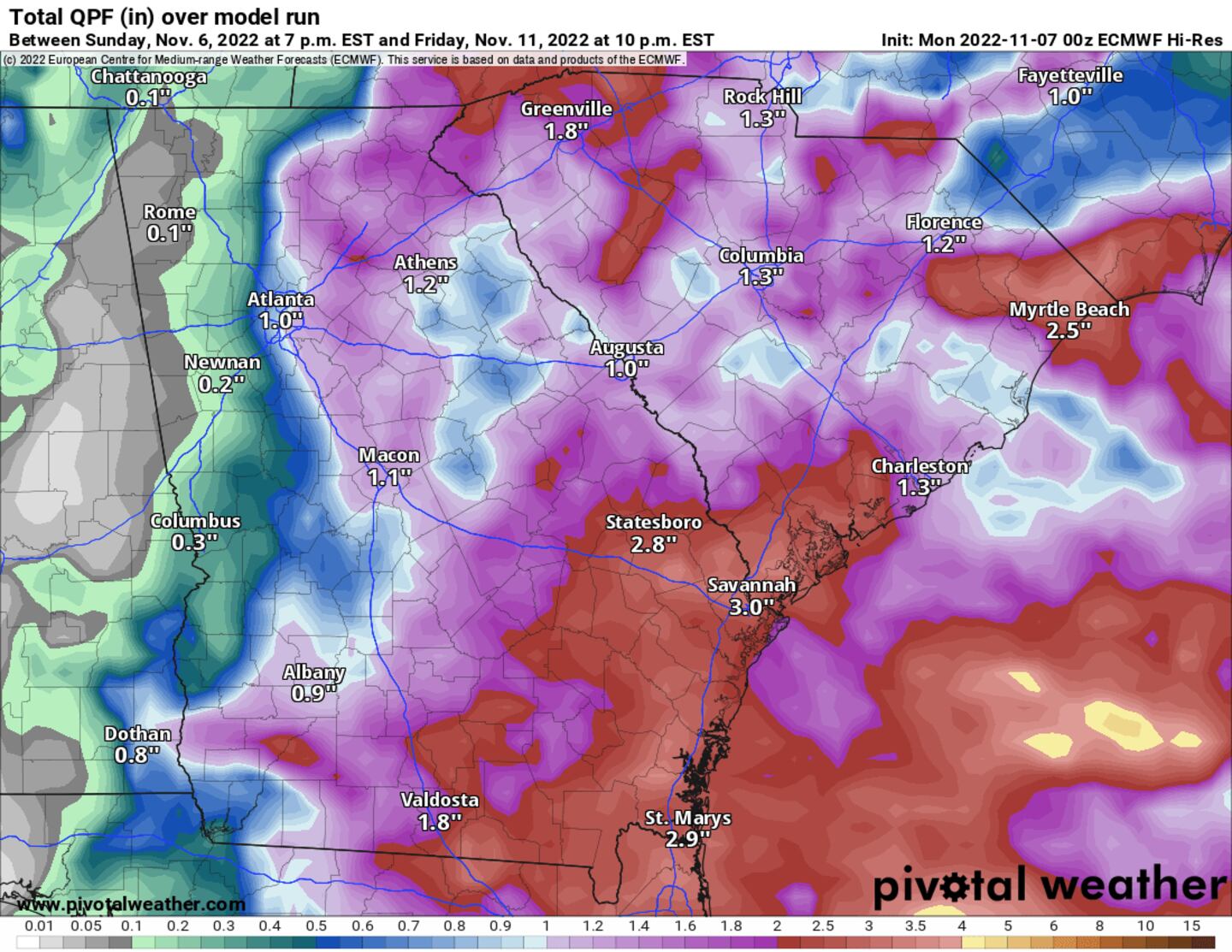 For Metro Atlanta, rain will be limited to the eastern half of North Georgia, with the heavier rain located near Athens. As much as 2 inches of rainfall is possible Friday through Saturday.