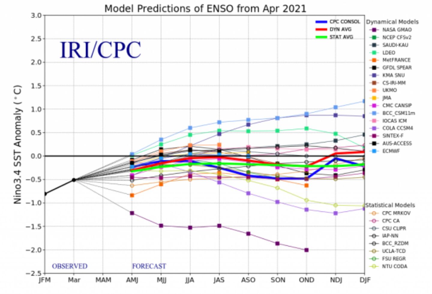 IRI STATISTICAL AND DYNAMICAL MODEL ENSO PROJECTION: