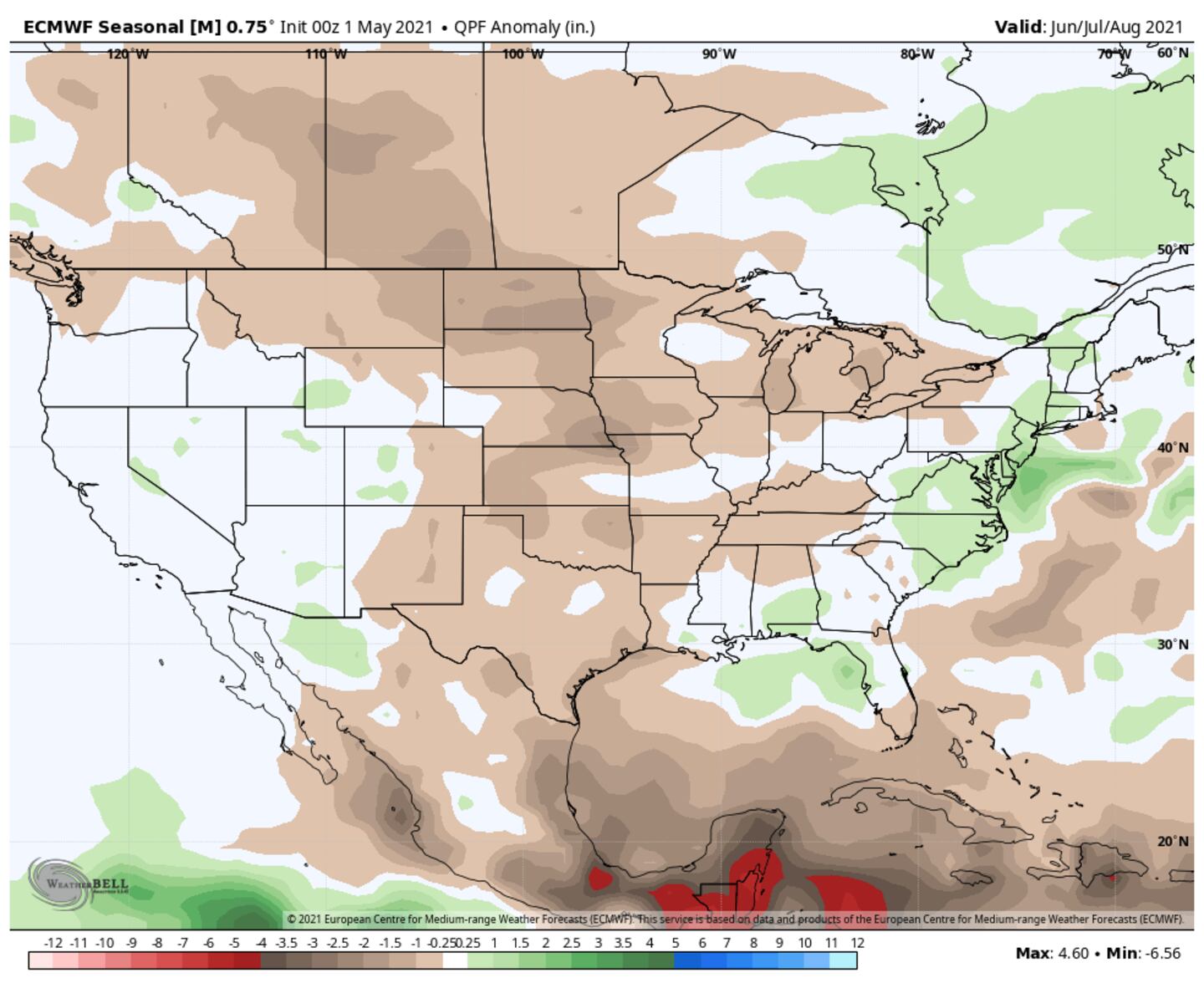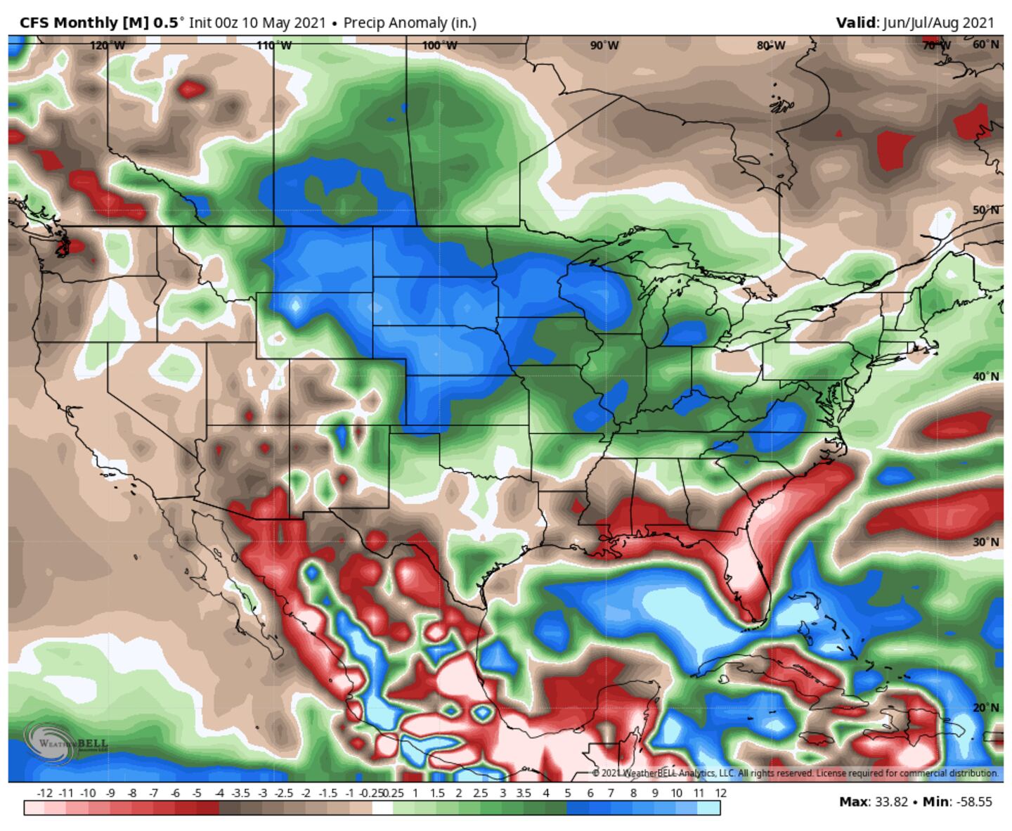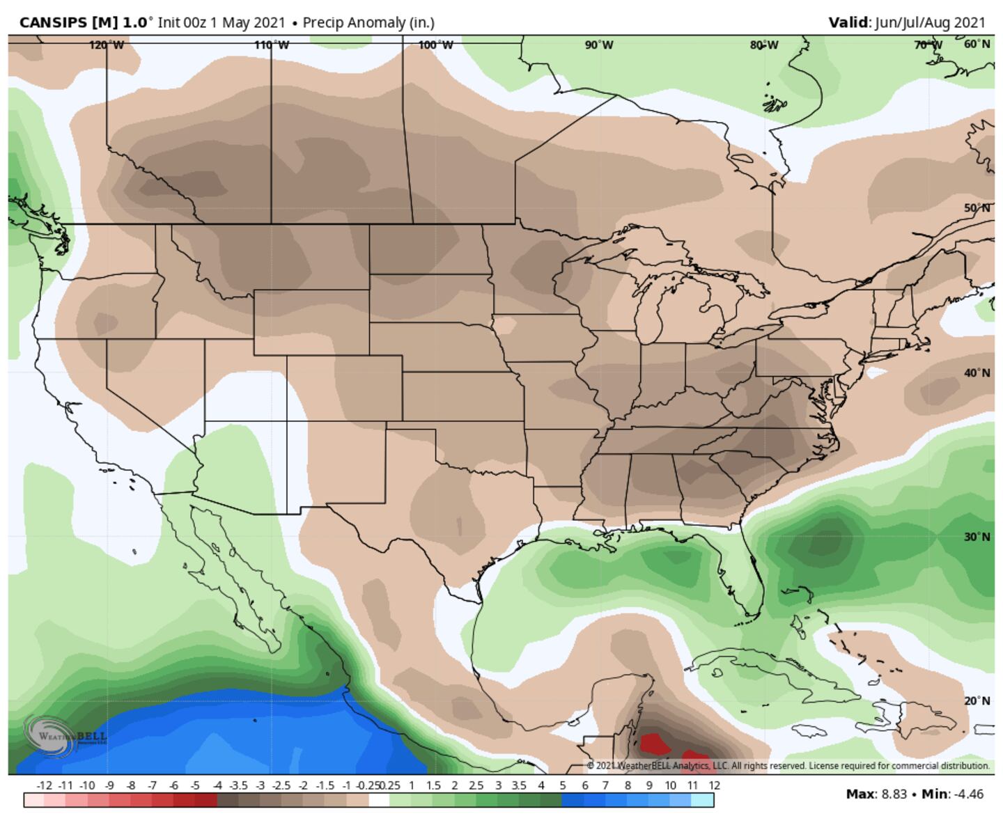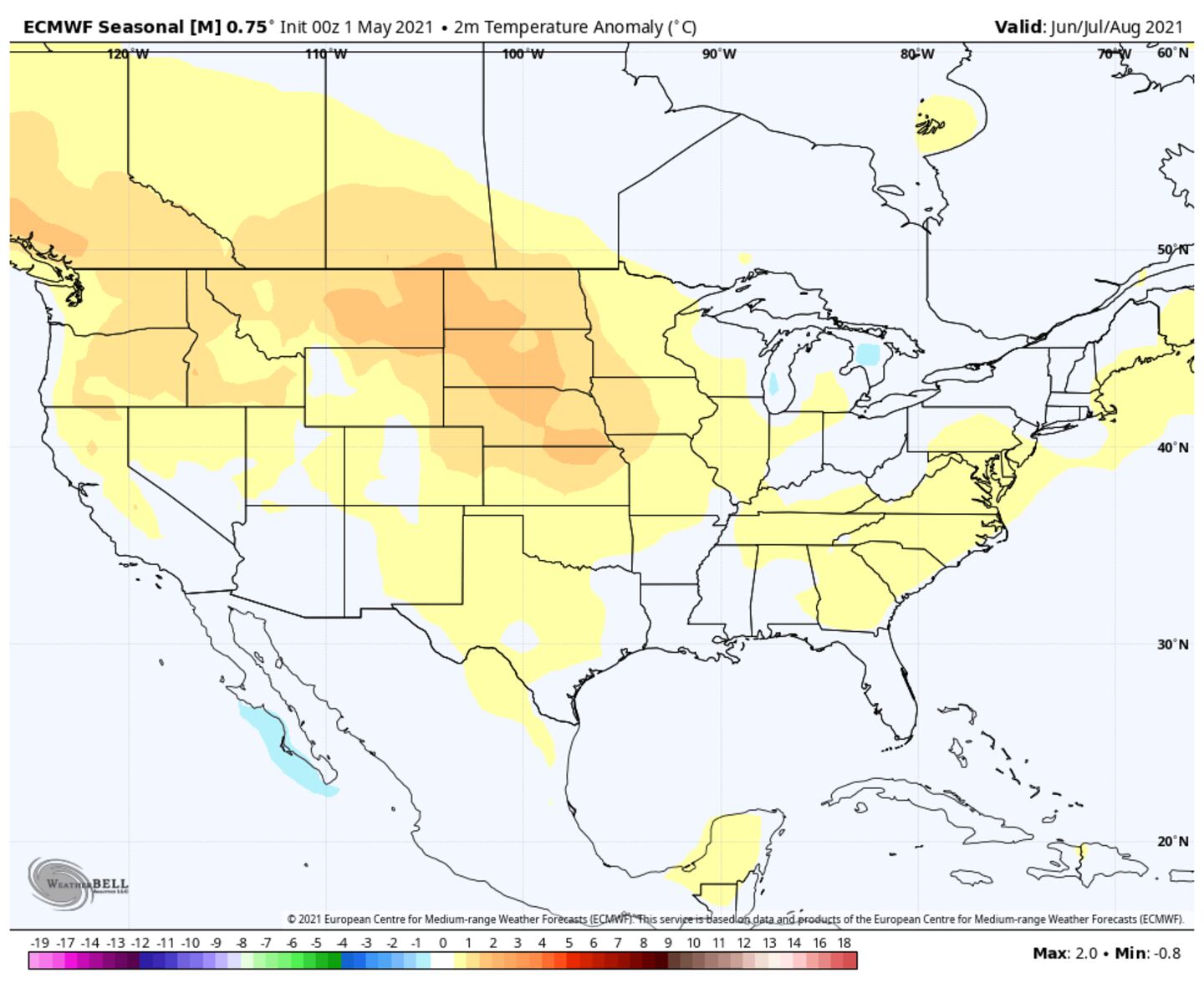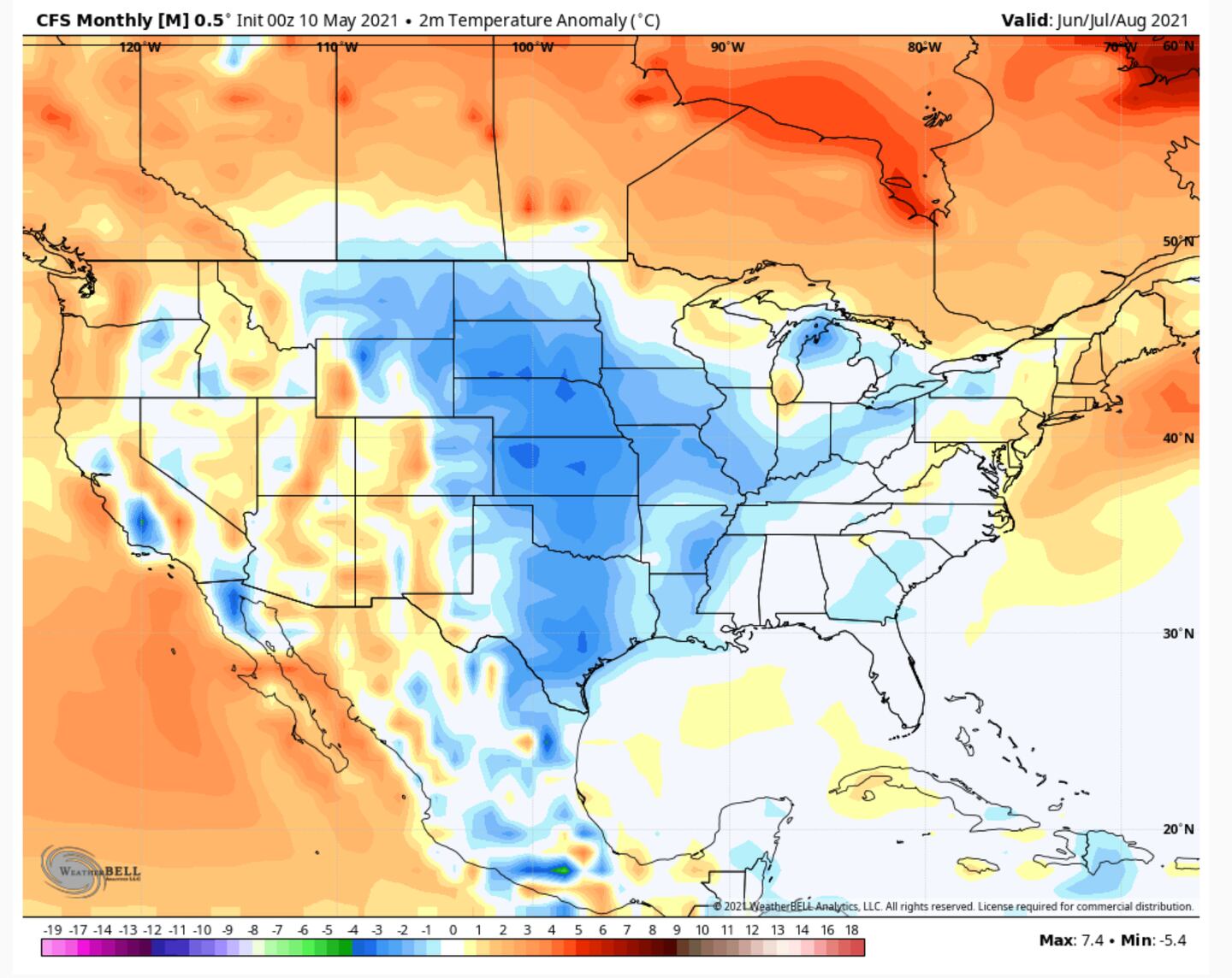 In fact most of the major global climate models show above-normal temperatures for much of the country every month through November.