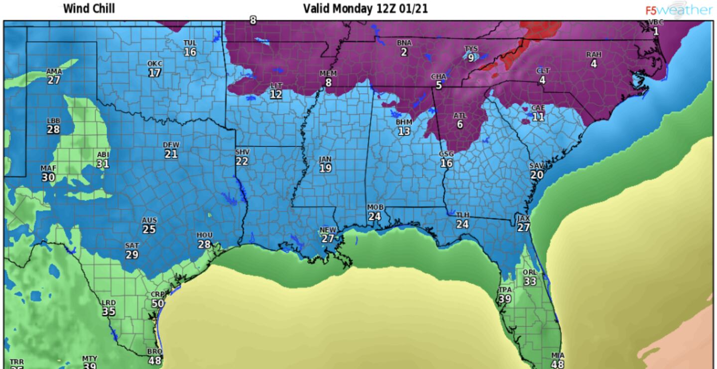 ECMWF MODEL FORECAST WIND CHILL MONDAY MORNING: