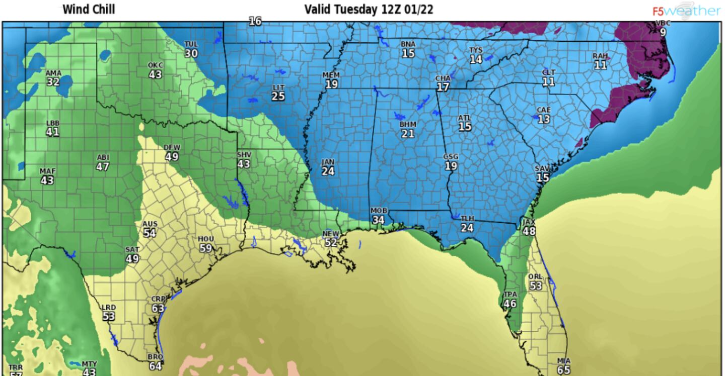 ECMWF MODEL FORECAST WIND CHILL TUESDAY MORNING:
