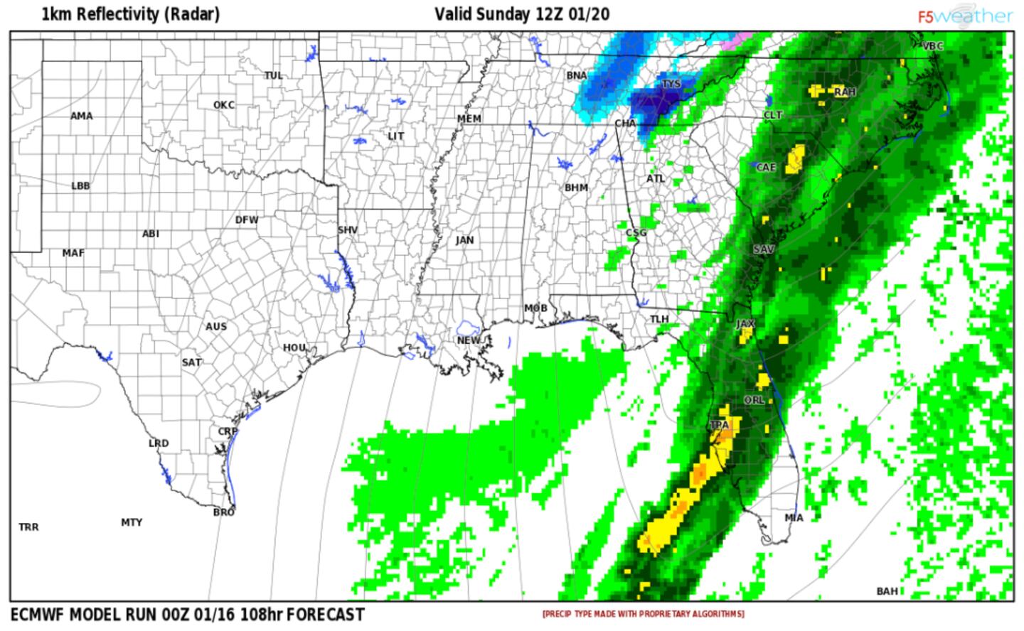 ECMWF MODEL PROJECTED RADAR SIMULATION 7AM SUNDAY: