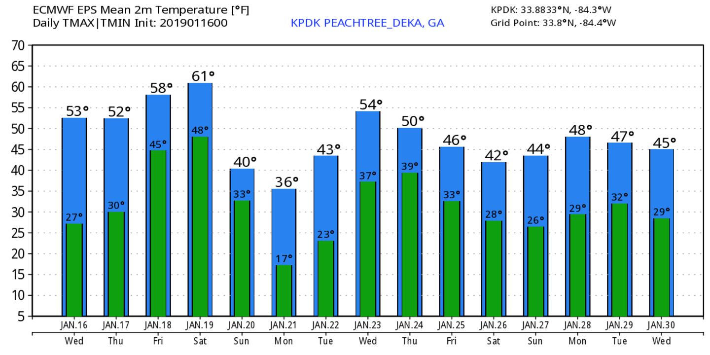 EUROPEAN AND GFS MODEL ENSEMBLE 15-DAY TEMPERATURE OUTPUT: