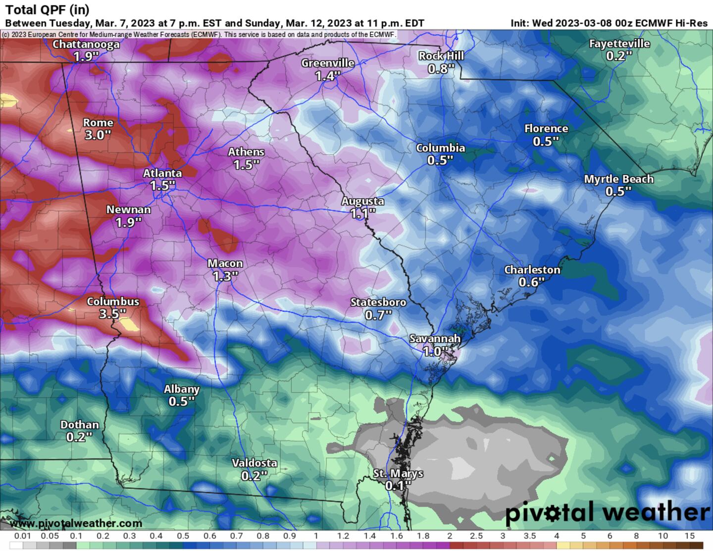 Rainfall will also increase through mid-March with as much as 2 inches of rainfall possible through Sunday.