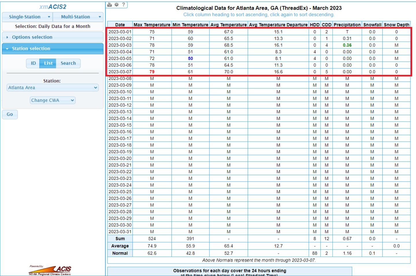 Since February 20, afternoon highs have consistently climbed into the 70s and 80s, and that trend continued into the first week of March.