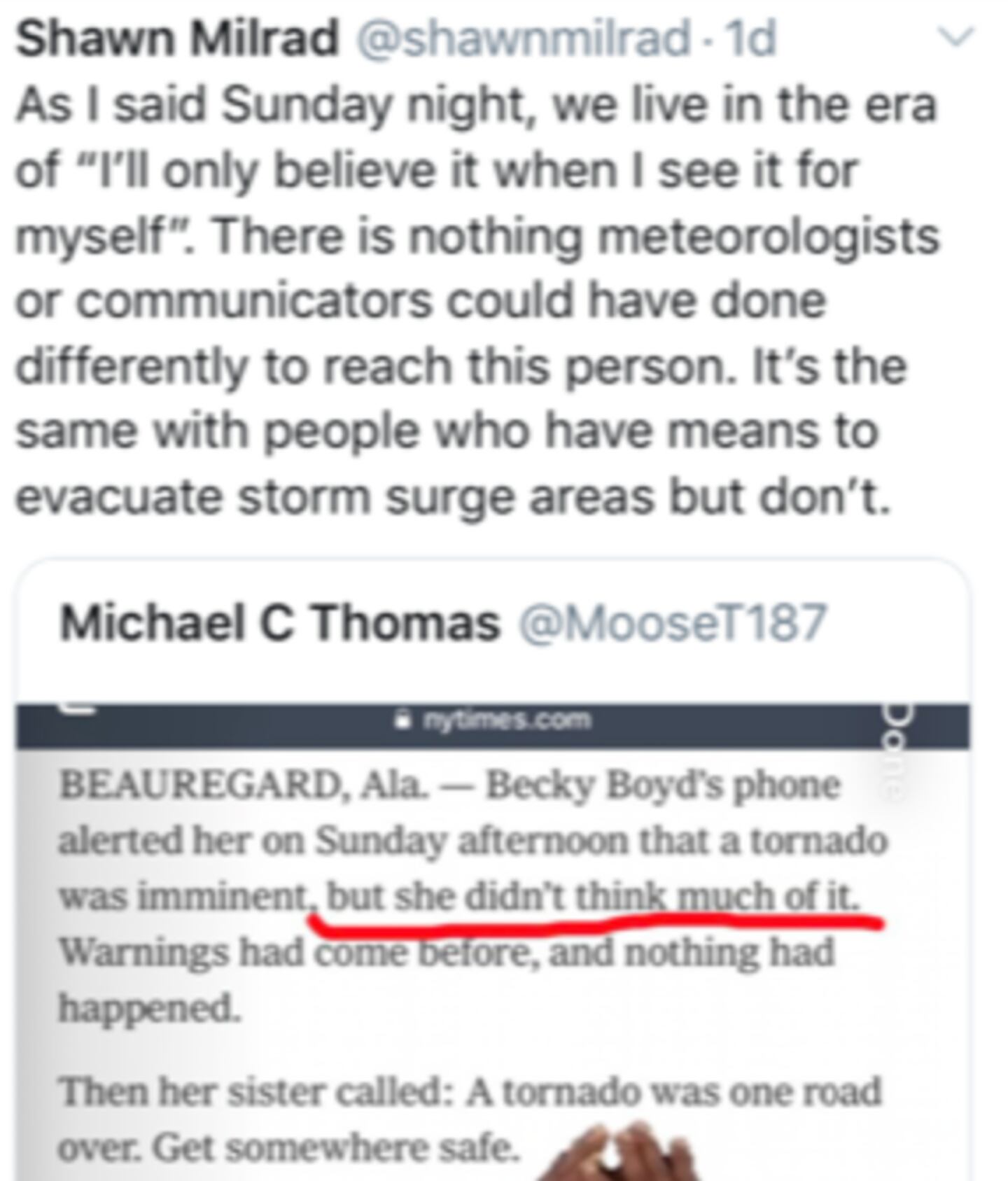 Also some people somehow don’t get the forecast or the warnings, or when they do they don’t know the right thing to do or where to go.