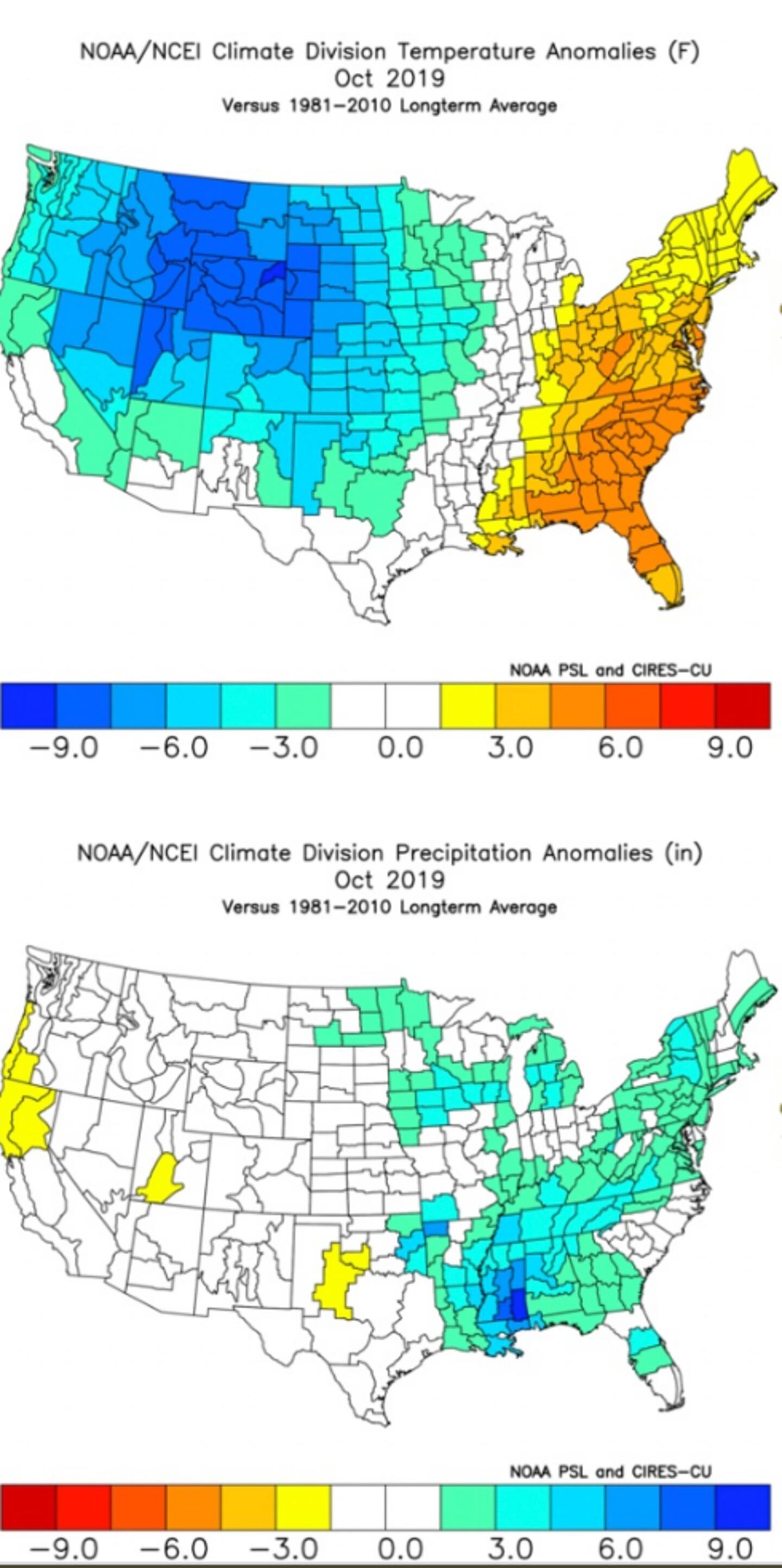 To this point September temperatures have averaged near-normal to slightly below, with rainfall above-normal: