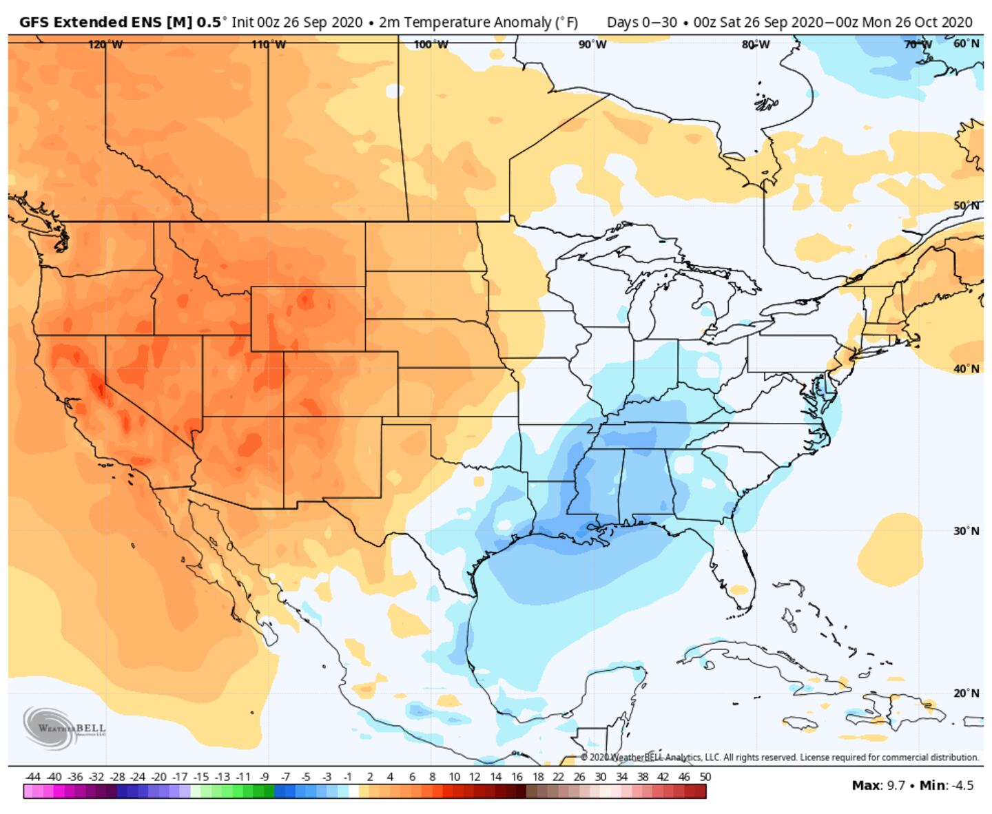 I think the odds favor drier than normal (unless we get impacted by a tropical system) with temperatures near-average to a little cooler than normal for the month as a whole, not every day or every week but the average for the 31 day period.