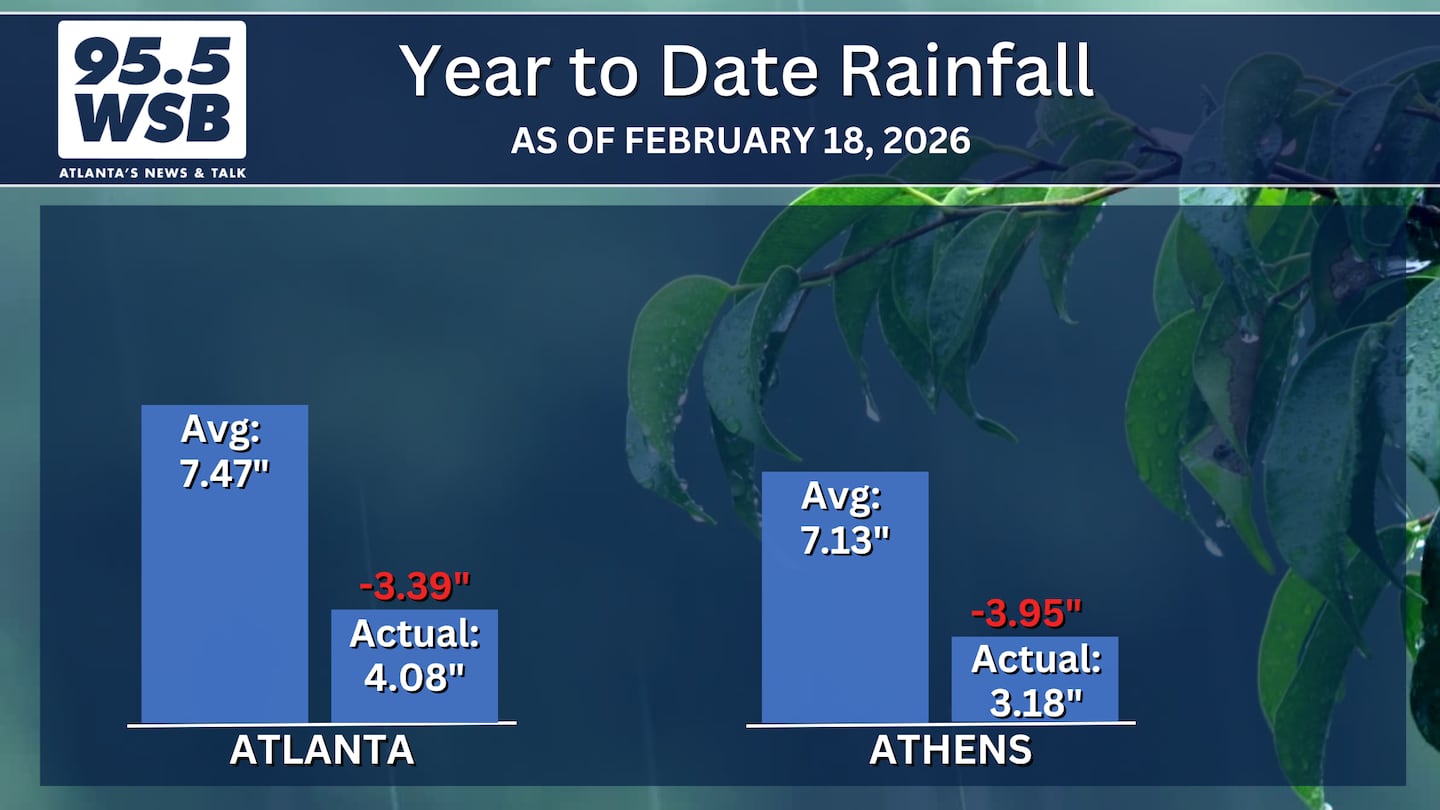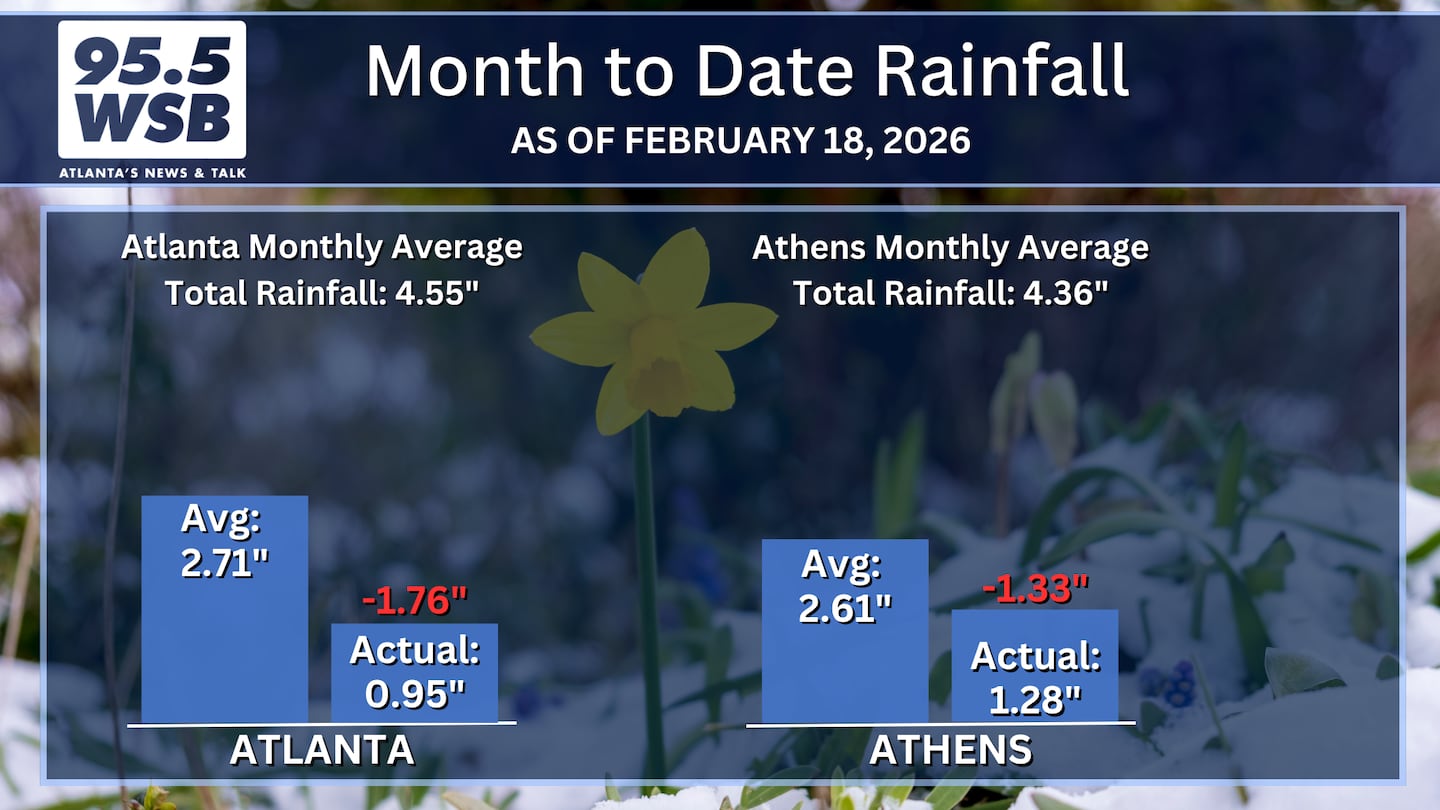 Month to date, only a third of the average rainfall has fallen in Atlanta so far for the month of February.
