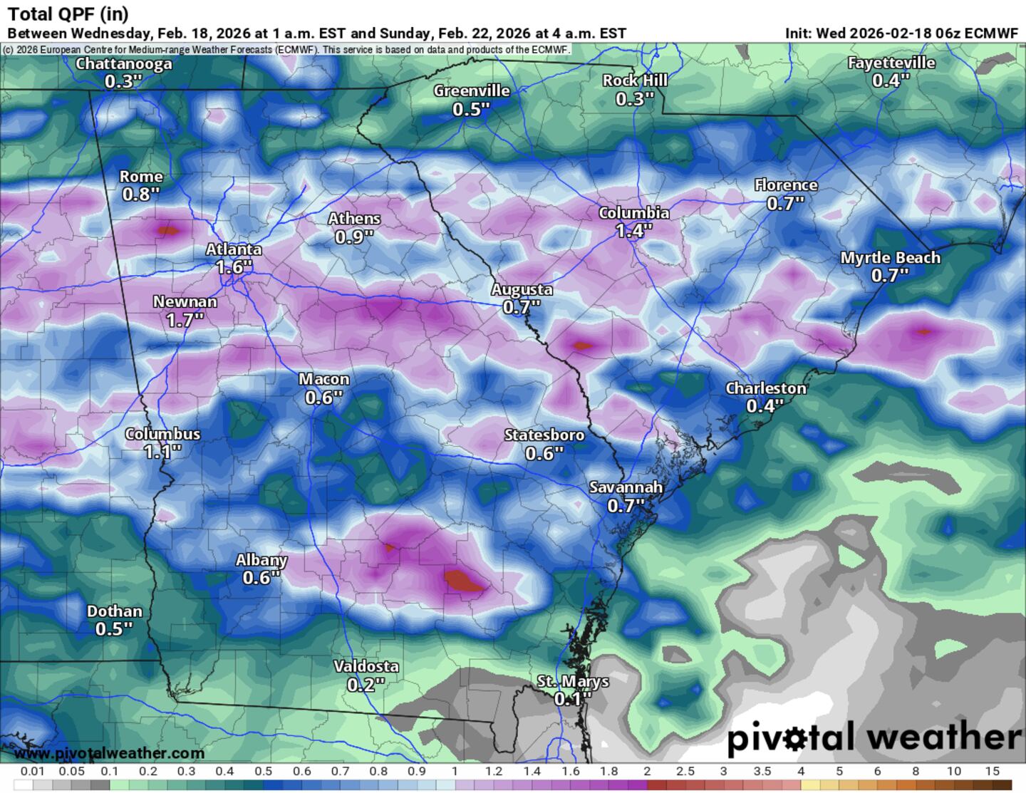 Year to date, the North Georgia region is experiencing rainfall deficits around 3 to 4 inches below average.