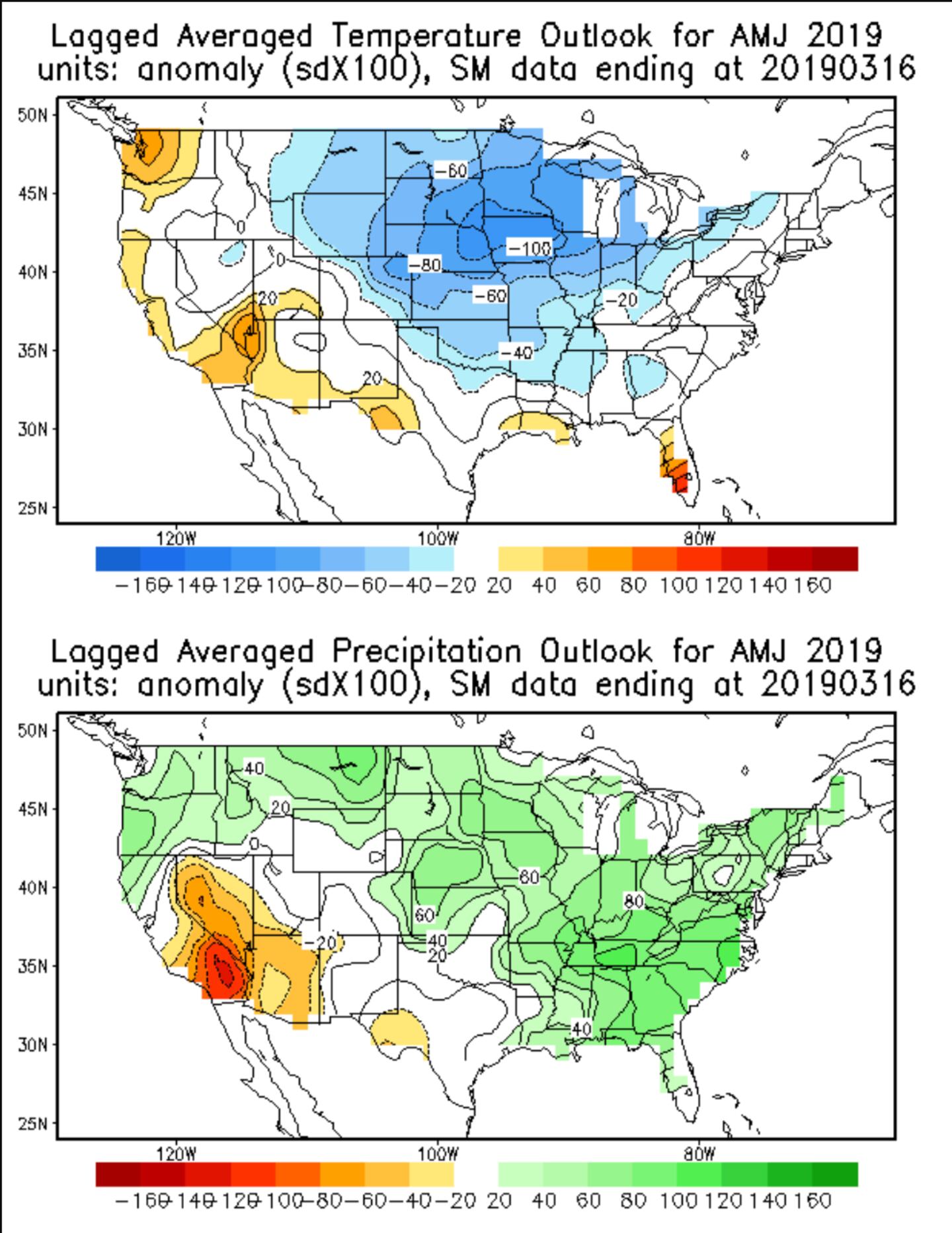The National and International model equations on the other hand suggest warmer than normal for May. They also show above-average rainfall in May.