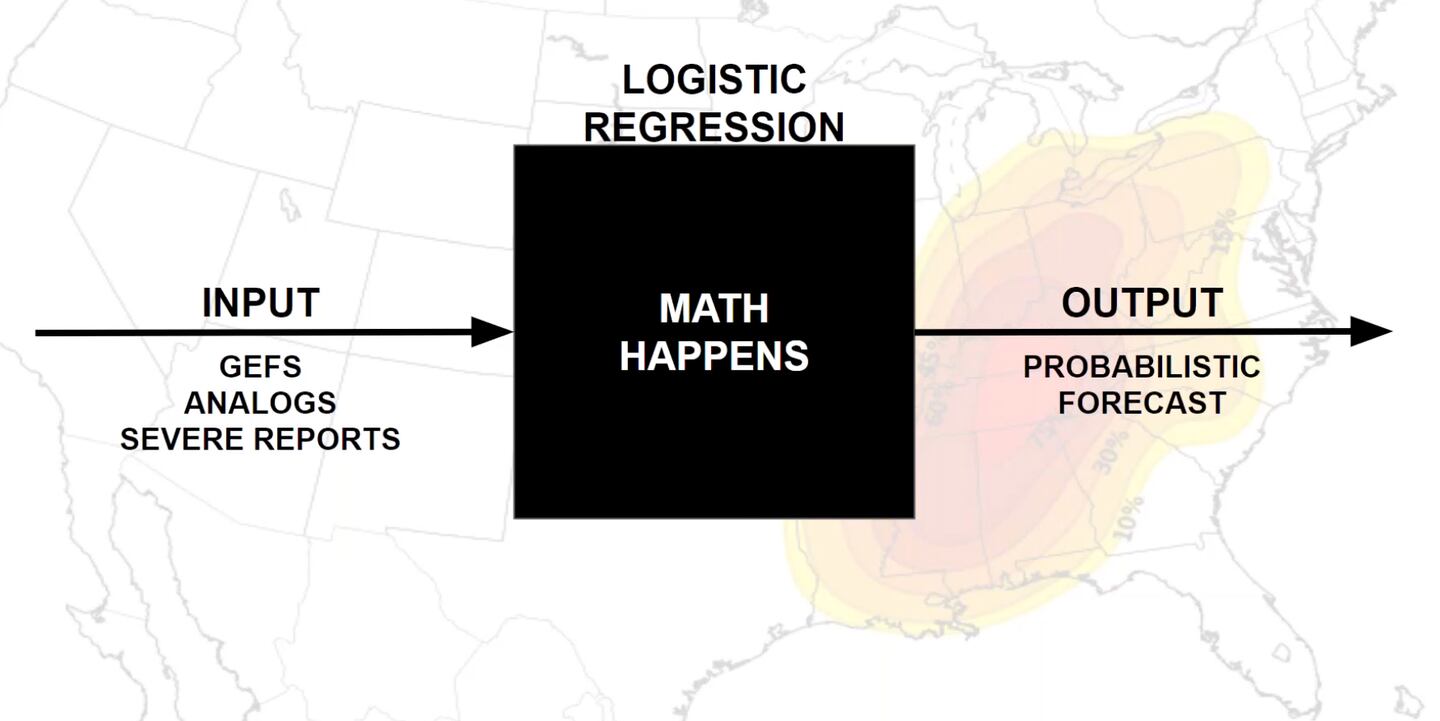 The automated system uses the top 15 closest matches to the past. So if it showed about 5 of those 15 analog years had X occur that would be about a 30% chance analog-wise using logistic regression based probabilities from machine-learning.