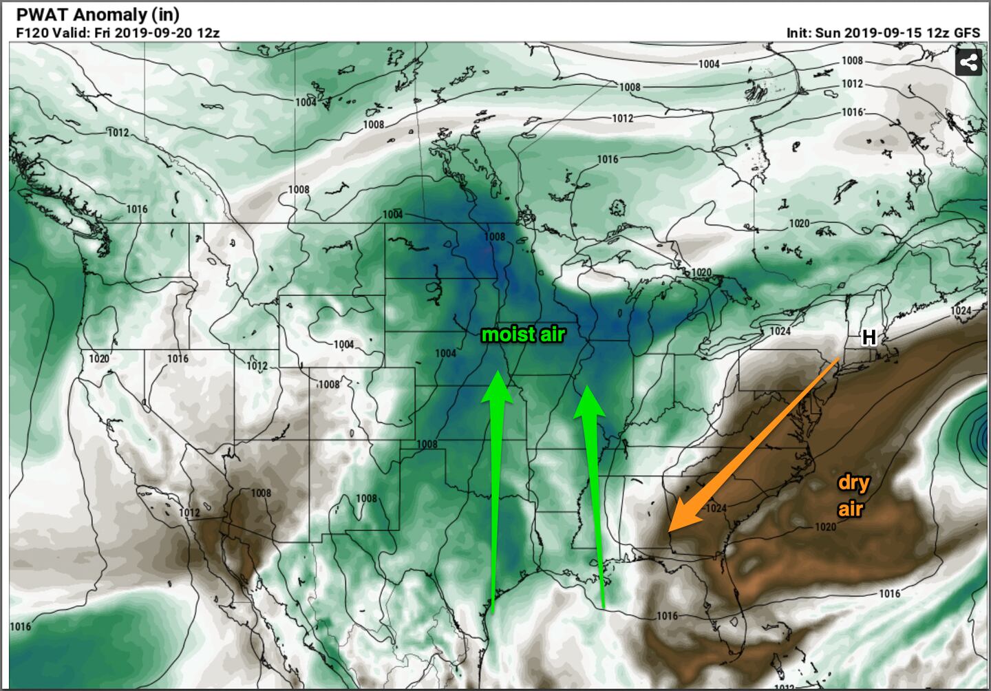 PivotalWeather maps of precipitable moisture (total moisture content) LATE WEDNESDAY-THURSDAY: