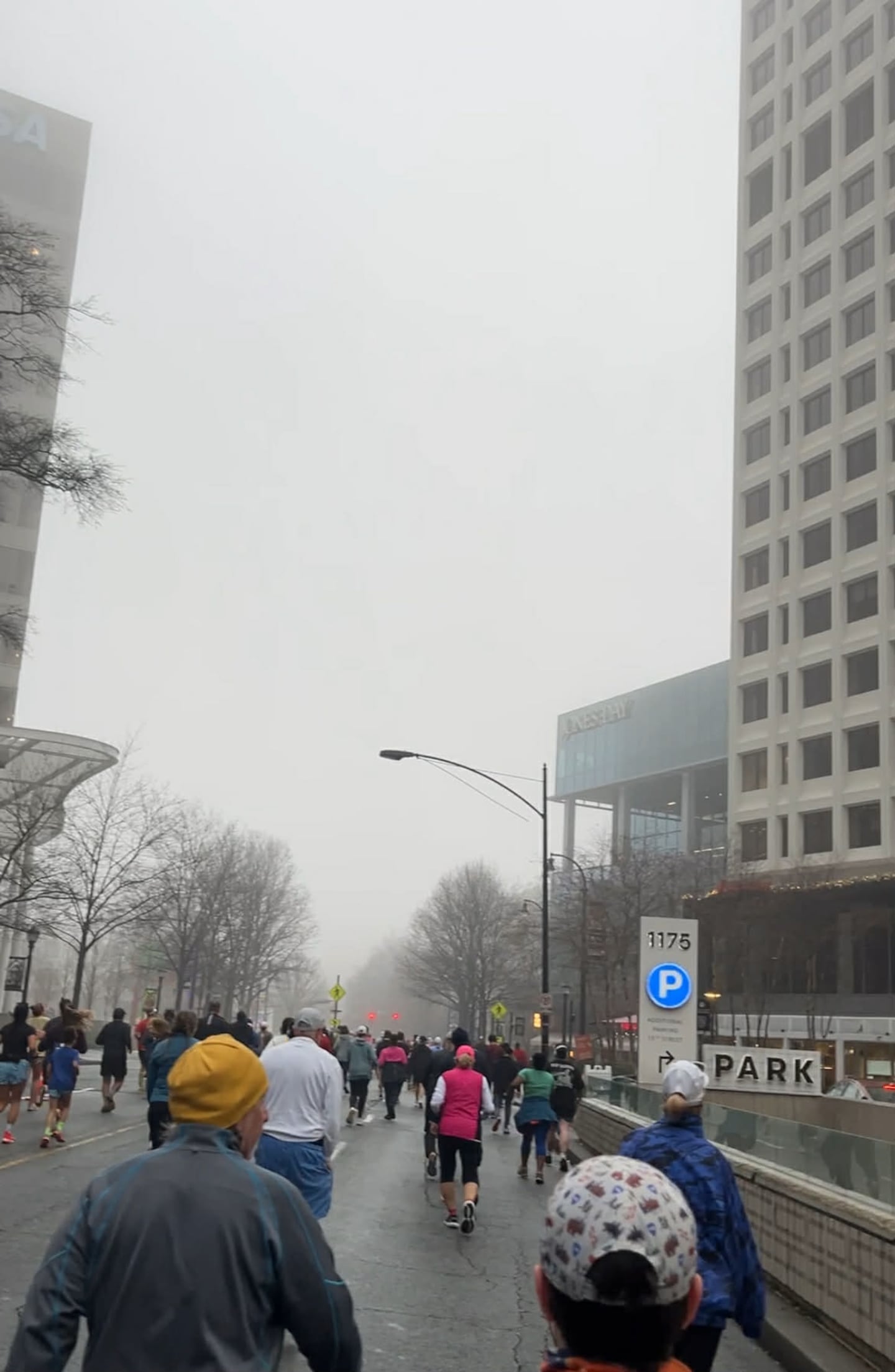 The Metro area experienced dense fog on Saturday morning as 9,000 runners traveled north on Peachtree Street for the Polar Opposite Peachtree Road Race.