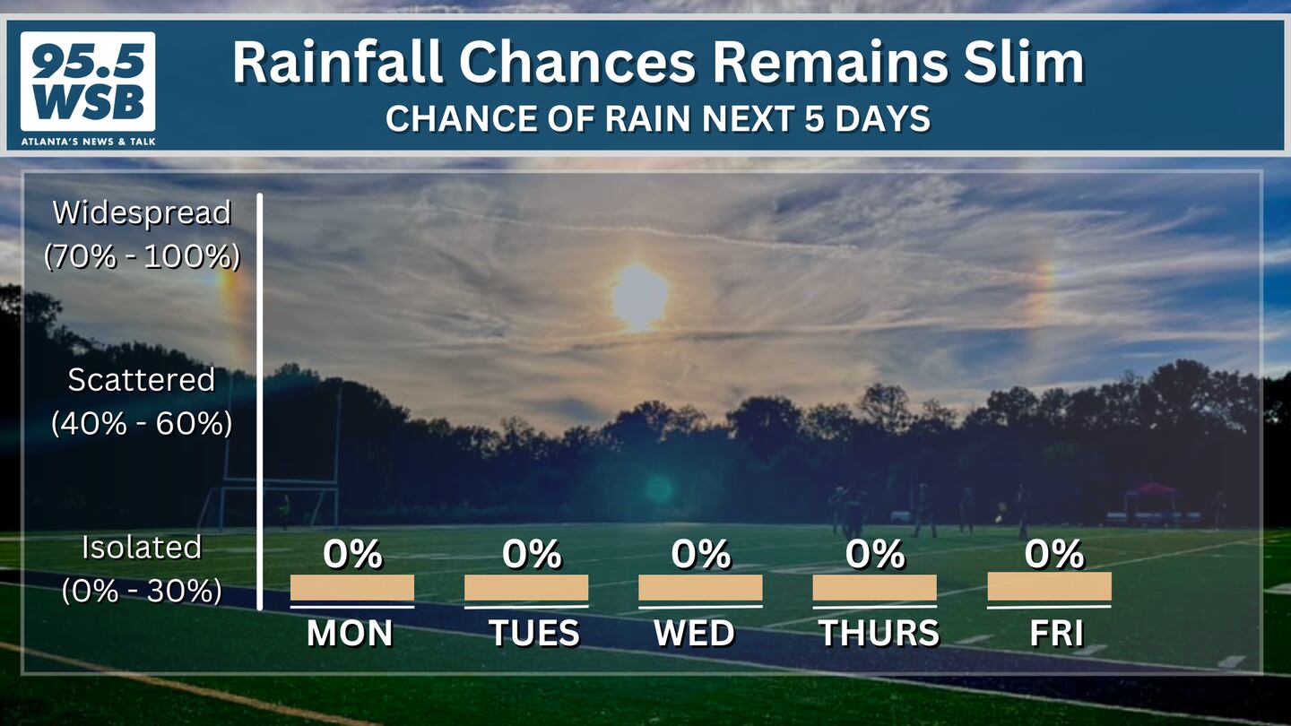 As a result, we will see the cirrus clouds, but the rain will stay in the central Plains of the U.S., and the dry spell will continue for Metro Atlanta through the rest of this week.